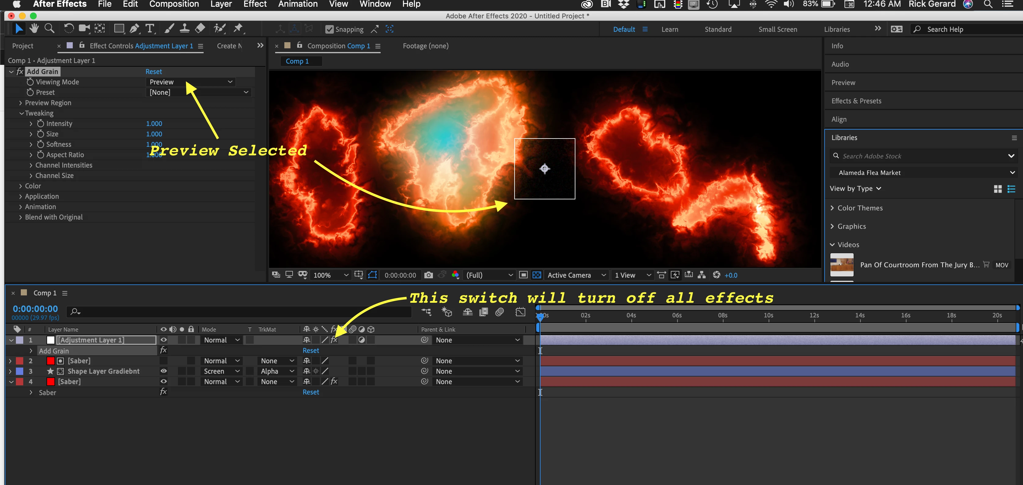 You have shown the Effects Control Panel, but if you select the layer and press the U key twice you'll see everything that you changed. All the Lumetry changes will show up as well as changes to Remove Grain. If Remove Grain does not show up in the timeline you didn't make any changes so pressing "e" will show you all effects added to your layer.