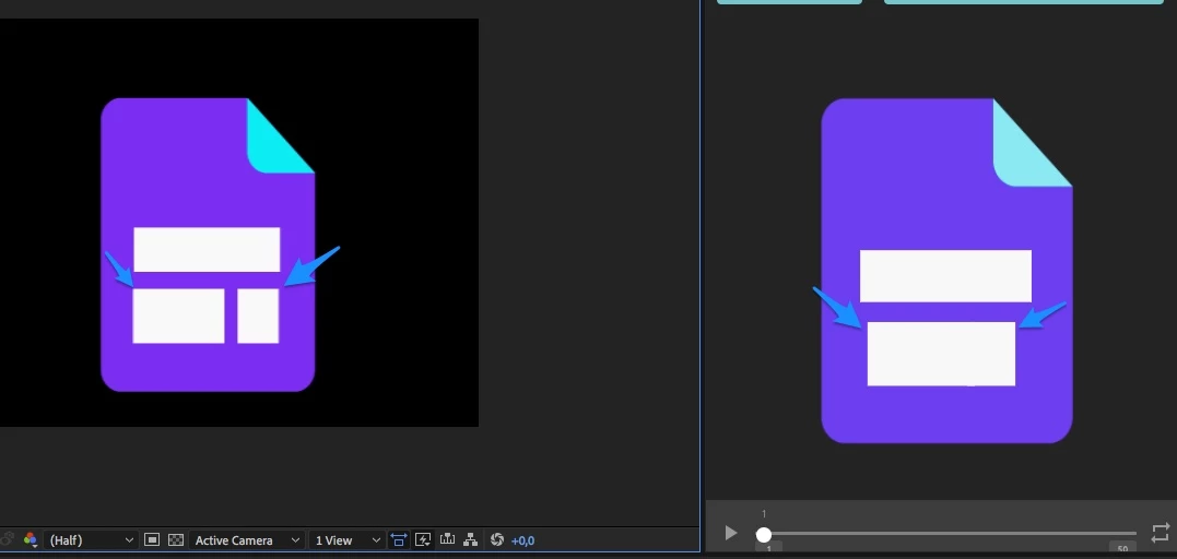 Those images are from the AE and the preview of lottiefiles. Then when I export it to json, the same happens. As you can see, it changes the position of both rectangles and I have no idea why or what can I do to be the same animation.