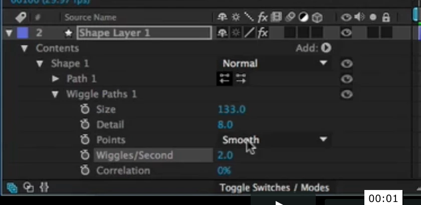 I have the newest version of Adobe After Effects, and for some odd reason, the contents section of a layer is not showing up. I want to add a wiggle effect to my water layer. I imported it from Adobe Illustrator