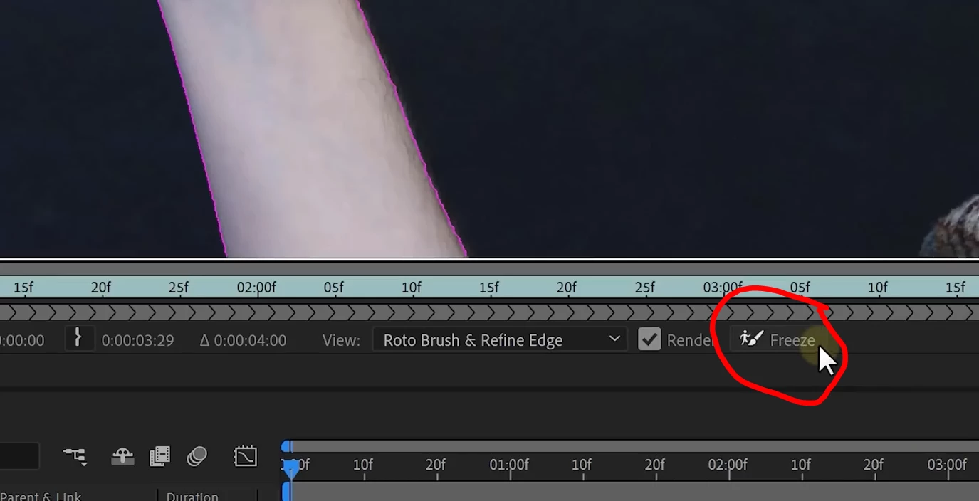 Where is the freeze button for new RotoBrush 3.0?