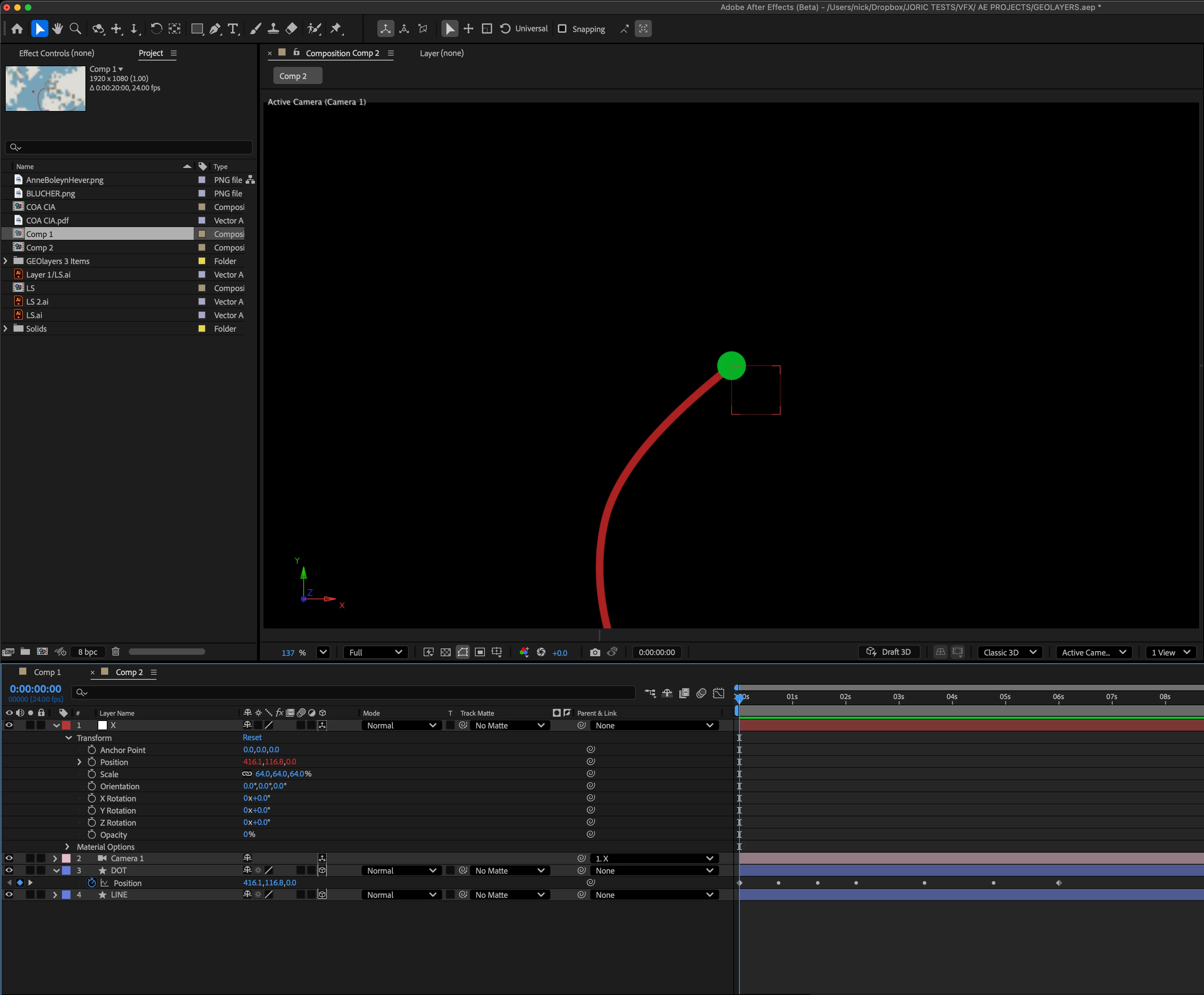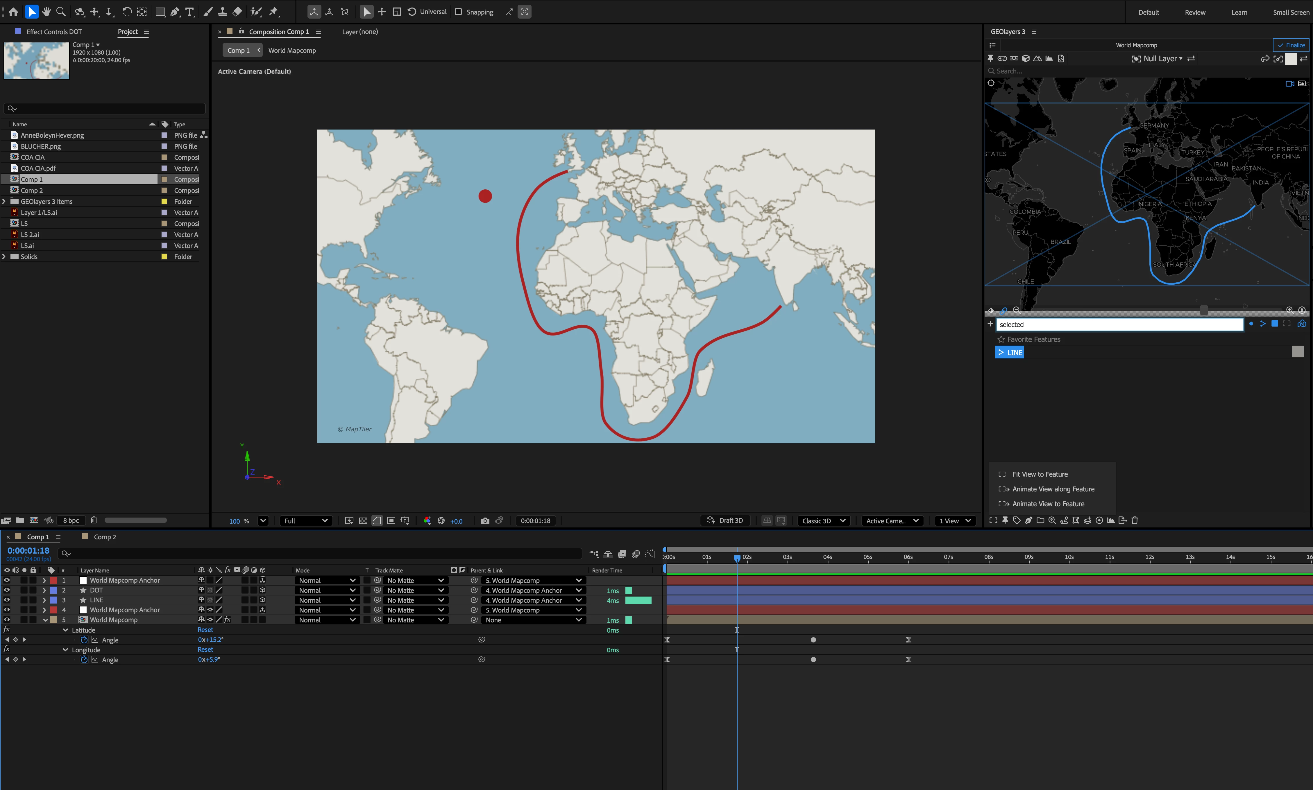 In After Effects, perfectly framing a moving target is easy. With a null parented camera, you simply parent the null's position to the moving target's position and the target will always be perfectly centered in your frame. Why is it that Geolayers 3 doesn't allow me to do this? It will frame a moving object along a path using "Animate View Along Feature", but I can't seem to frame the moving target perfectly in the center of my frame with Geolayers 3. What am I doing wrong or possibly missing?