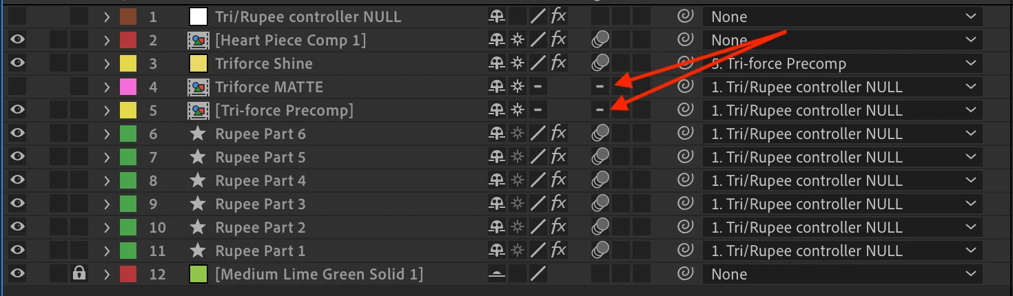 I'm working on a fairly simple After Effects project where I can enable motion blur for most layers, but I can't turn it on for two pre-comps and I'm not sure why. In the timeline there is a dash icon instead of the motion blur icon, and it doesn't change when I click on it.