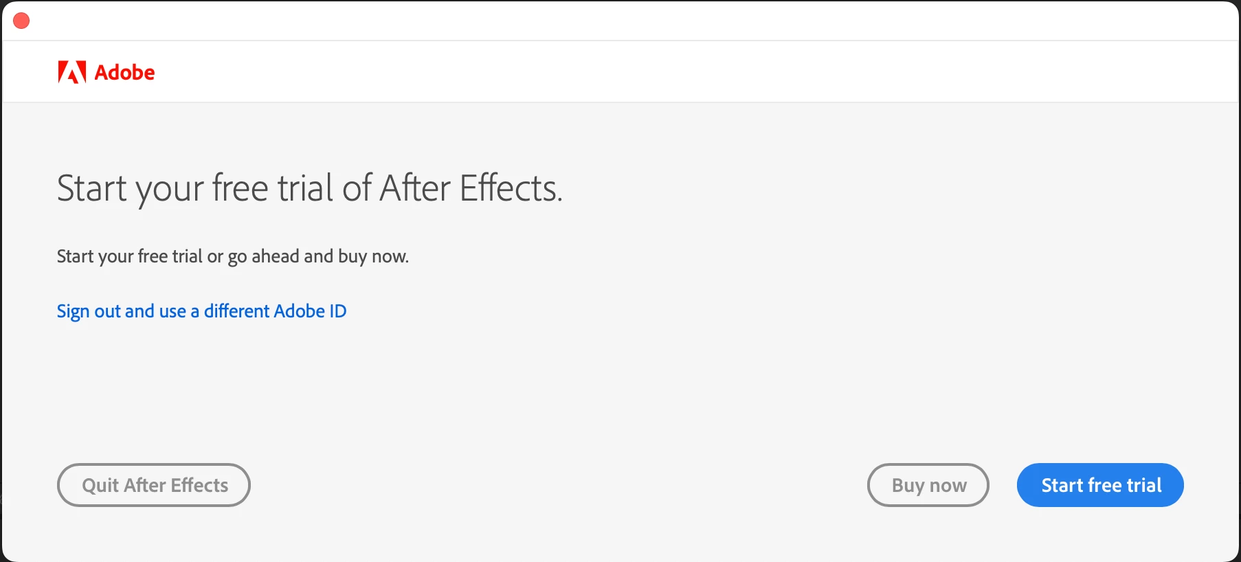 Why does opening premiere prompt a pop up that says start your free trial of After Effects? I pay for the full suite of creative cloud. I've been paying for it for years, and After Effects has been working fine for months. I didnt do any recent updates and then i get this random pop up this morning and now I can't use After Effects even though I'm not trying to. What triggered this pop up if I didnt update anything or do anything differently then what I normally do. And more importantly how do I fix it? I'm too scared to hit sign out because Premiere is working just fine and I need to make client corrections today and don't have time to risk premiere not working too if I hit sign out. This random pop up is clearly a huge bug that adobe needs to fix. see attached screenshot.