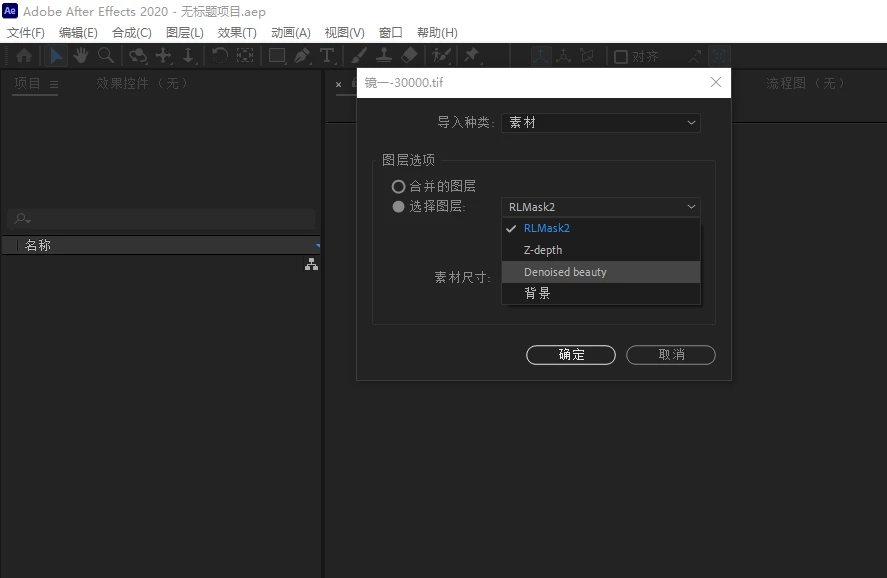 Why doesn't the layer selection pop up when I import tif into AE?