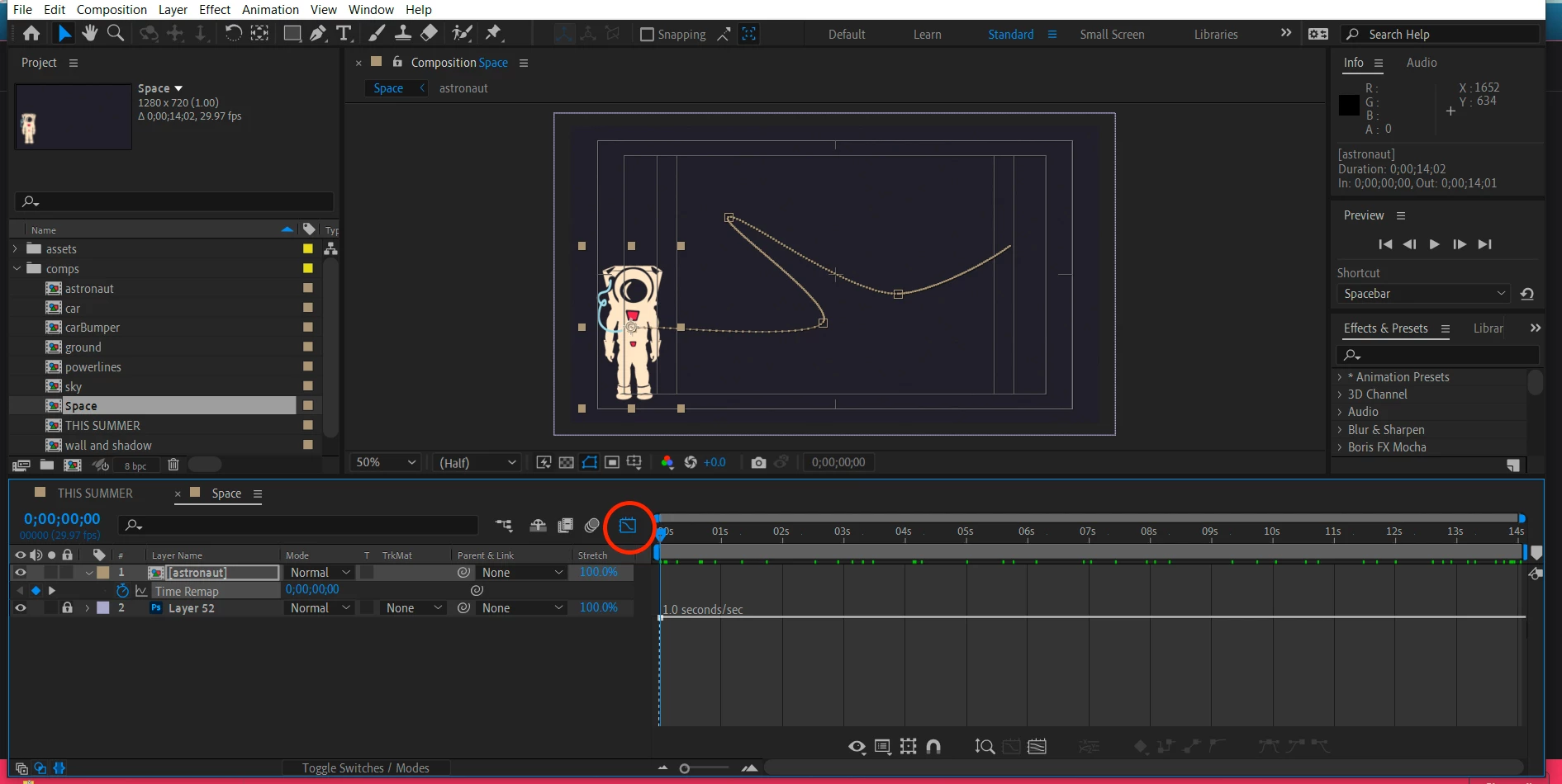I'm working on a project for school and I'm trying to fix the timing in a composition. When I enable time remapping, however, the source time ruler isn't appearing underneath the composition panel. Is there a way to fix this? Here's a screenshot below.