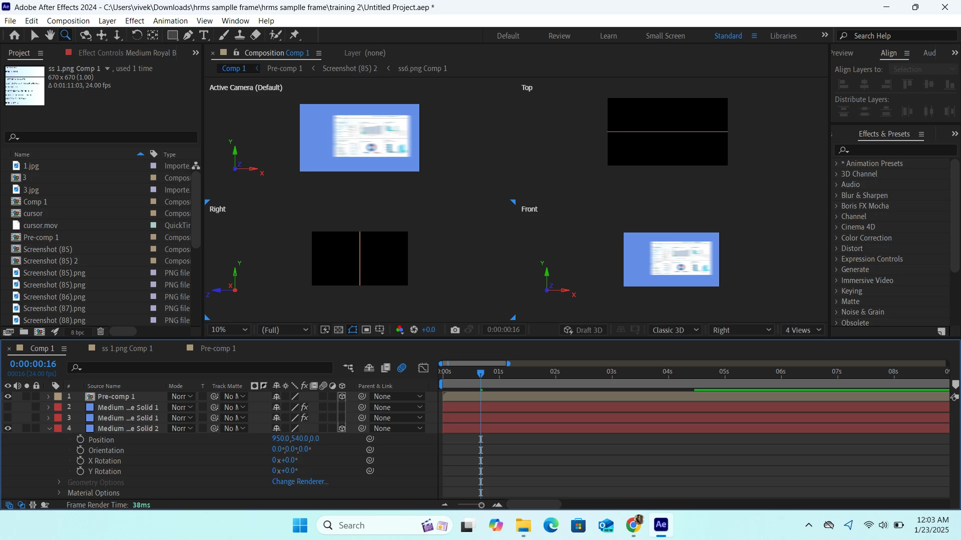 when i open why after effect my screen showed black but when i change why screen front to active camera my solid layer showed up but its not showed up in front camera but when i do my layer or convert it in 3d layer showed up ?? why this is happening