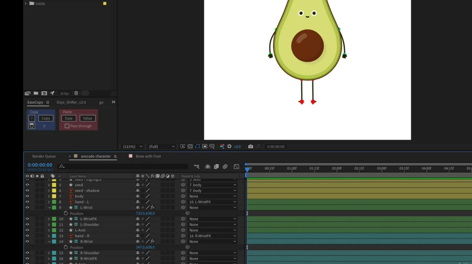 So the tutorial am following there the tutor positions hands of a cartoon in a way that it has same Y value (638) and different X value (733,347). (I attached the figure)
