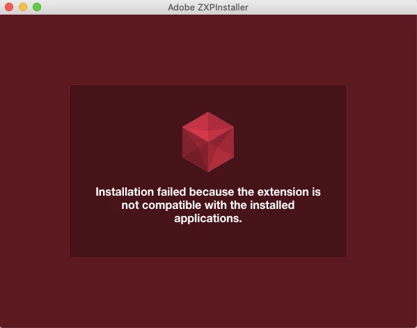 I downloaded the Adobe ZXP installer and the Bodymovin extension for Adobe Effects. When I drop the Bodymovin extension into the ZXP installer box, it says "Installation failed because the extension is not compatible with the installed applications." Here is a screenshot. I believe this is why I don't have the Bodymovin-tg.zxp installed yet.