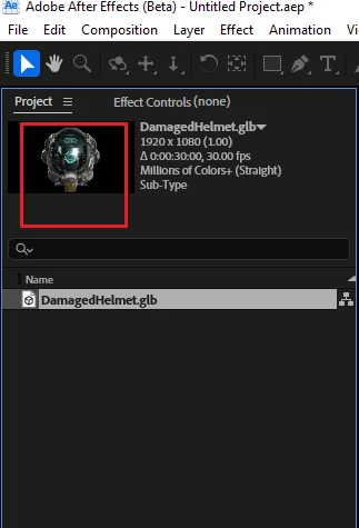 Version 25.0 x 28 of After Effects Beta introduces support for 3D Model Thumbnails and Previews.