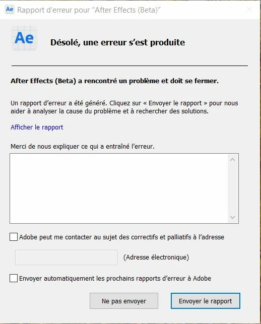 I have a Pr Project with 3 Ae parts in it. If a modification needs Ae for prewiev every thing is fine but when I close Pr, Ae crashed. I am unable to send (or not send) the crash report. I have to force Ae to stop in task manager.