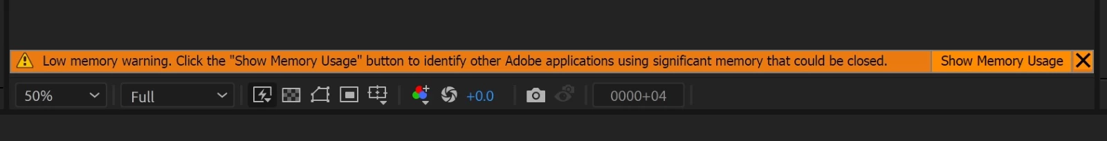 The latest build has an improvement to the warning banner shown when AE encounters a low memory situation during preview. The amount of RAM After Effects is allowed to use is set by the “RAM available for” preference, but this amount is shared by all listed Adobe applications. This is not always clear so it can be confusing when “low memory” warnings are encountered during preview when multiple Adobe applications are open. To make this clearer, the updated warning banner now specifically indicates if other Adobe applications are open and recommends closing them to significantly increase AE’s share of the memory limit.