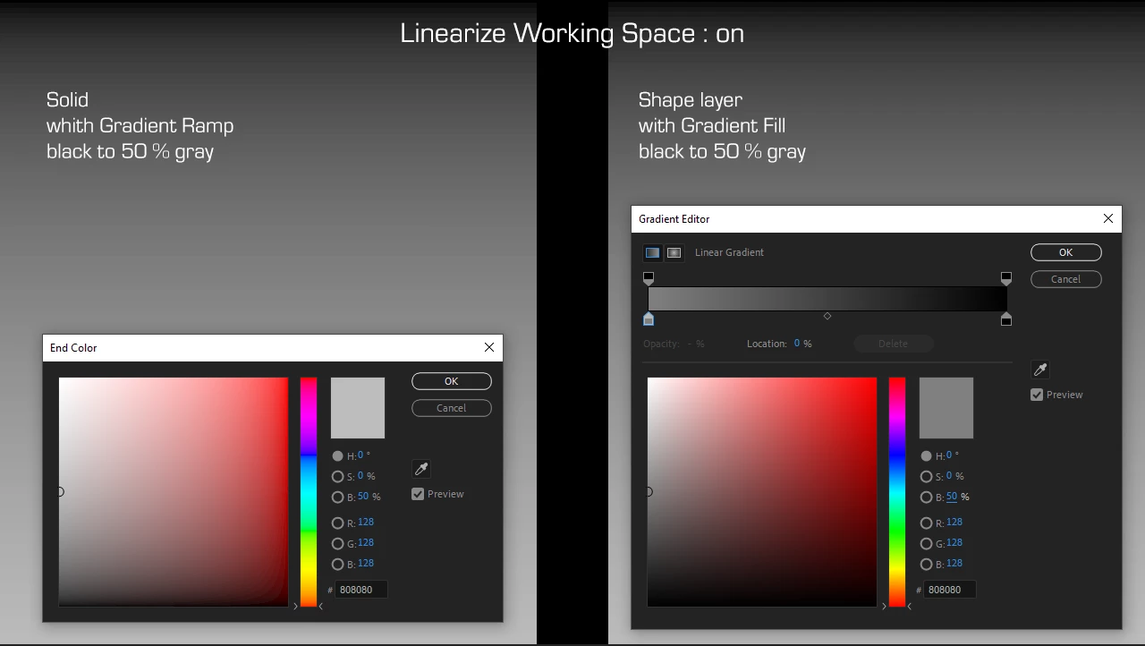 Color picker in the Shape Layer's Gradient Editor in linear workspace
