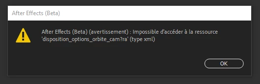 After Effects (Beta) (avertissement) : Impossible d'accéder à la ressource