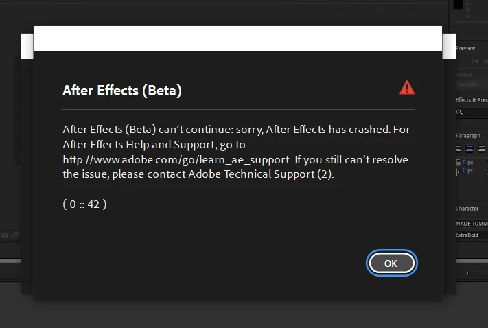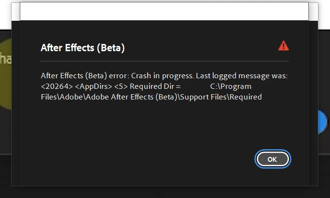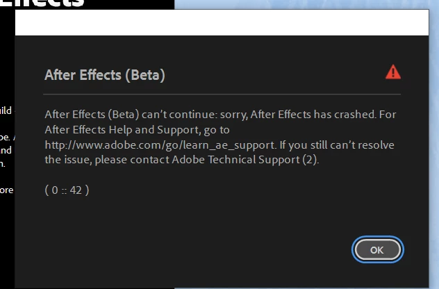 Crash in after effect beta and after effect on windows 10