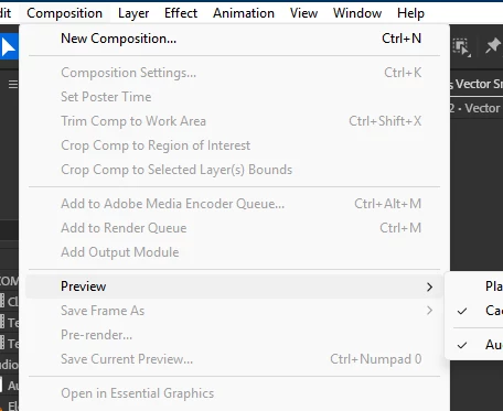 I’ve just updated AE Beta to 26.3.0x16, and noticed that the highlighting of moused-over items in the main menus is so pale that it’s almost non-existent. Here, I’ve moused-over “Preview”, not that you can really tell: