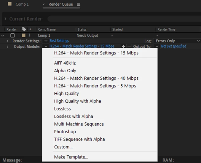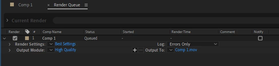 1. Add a composition to be exported to the Render Queue