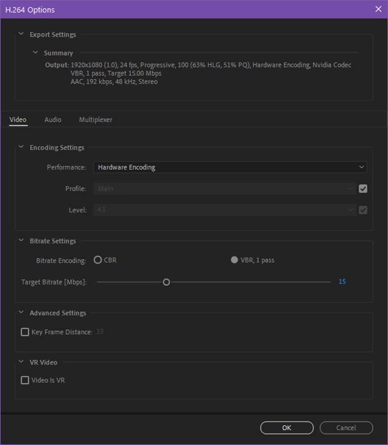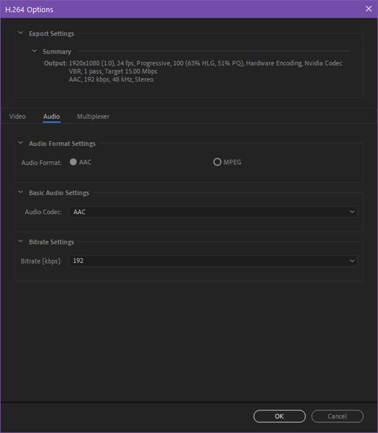 5. The Audio and Multiplexer tabs are also available for configuring those settings: