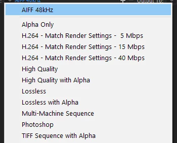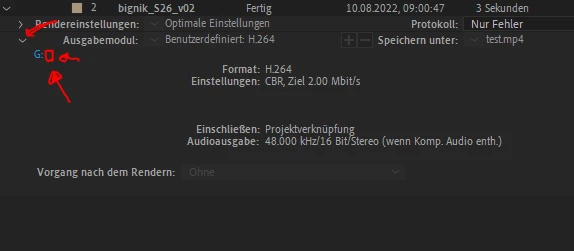 right click does nothing: So it works: First you have to click the arrow, then on that tiny (red) box, see attachment, if you don't have a longer subfolder to save the file in it. I mixed the function up with AME (my fault, sorry)