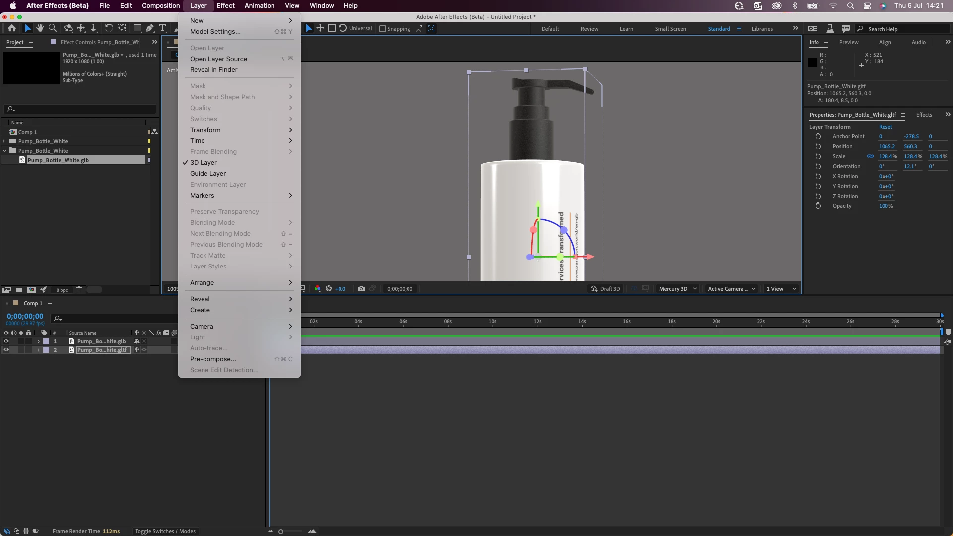 Howdy to everybody in AE Land! In today's build of After Effects Beta, v23.4 build 18, you can now extract cameras and lights from GLB and GLTF models in a comp.