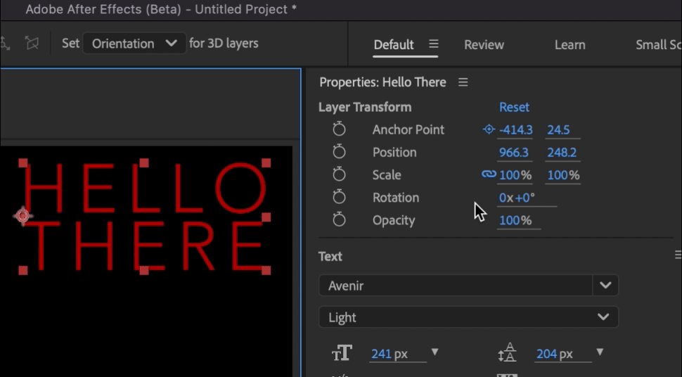 In After Effects Beta 25.1 Build 36, we are pleased to announce Quick Set Anchor, a more efficient way to change the anchor point on your 2D layers to any of 9-commonly-used-points — all the corners and centers of your layer’s edges. And it's available both from the Properties Panel and anywhere else by keyboard shortcut!
