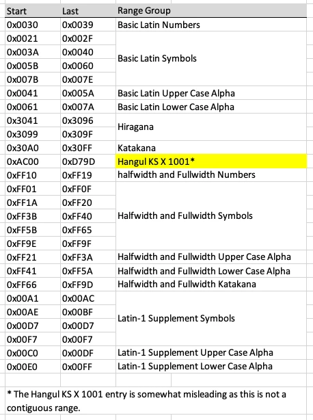 All this is driven by a table of Unicode range groups which I thought you might enjoy seeing.