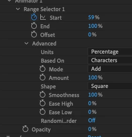 Consider with the following Text Animation settings:
