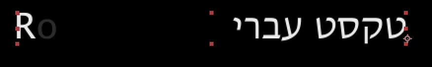 Now, a note about that though - this can lead to some surprising visual jumps in the case of mixed Roman and Hebrew text in the same line. In this example the text (in story order) is "Hebrew Text Roman" but when it gets composed it looks like this: