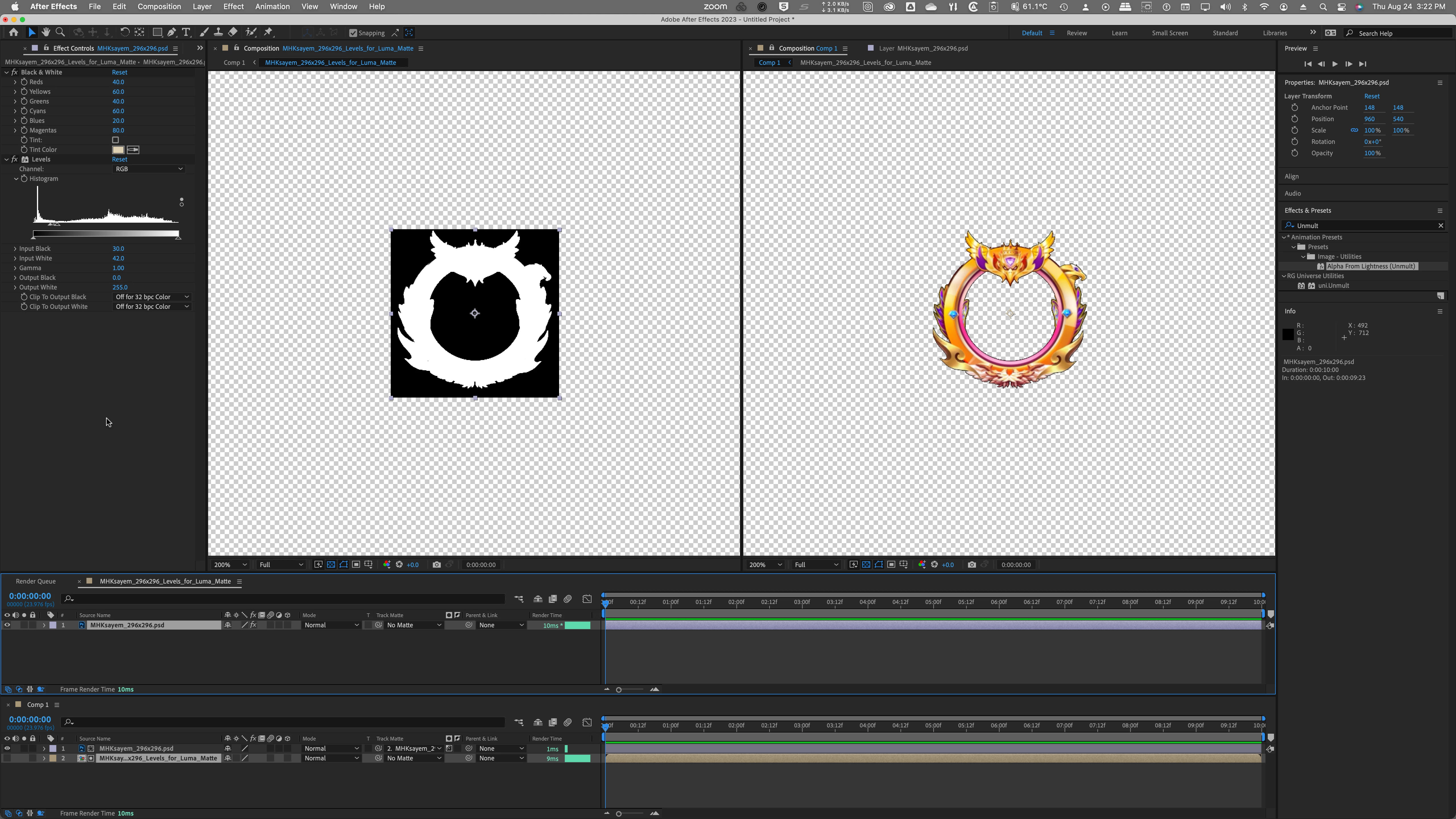 But I'm thinking of rendering the movie as an Image Sequence and then recording a Batch Action in Photoshop to remove the black with the Magic Wand Tool and Layer Mask (and maybe a slight, 0.25 pixel Gaussian Blur of the resulting Layer Mask) will give better results. Then import that Image Sequence into After Effects.