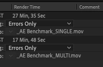• Use Ae Render Queue to export the benchmark project in Multi-Frame mode.