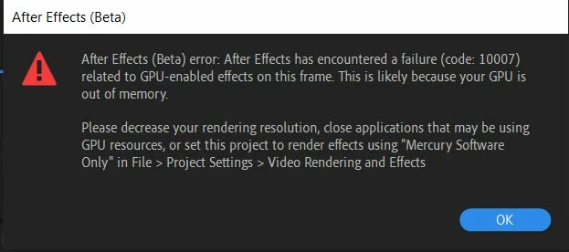 The 10007 error should have been fixed in build x30. If you're on x30 or above and still seeing it, can you enabled Logging (Help -> Enable Logging), make the error happen, then use Help -> Reveal Log Files and email the After Effects Log.txt file to mfrbeta@adobe.com. We'd love to take a look at it.