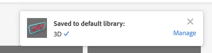 A notification will pop up in the right corner of your browser to confirm that the asset is being saved to your CC Libraries. You can change the default Library by clicking on "Manage" when this notification appears.