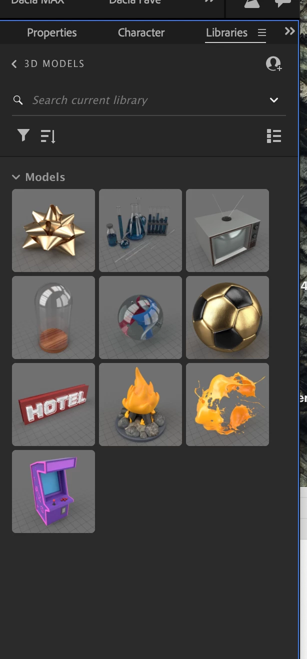 You will see all your new models in the Libraries Panel in After Effects!