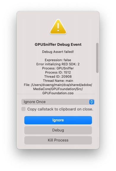 Reporting a Debug Assert Failed Prompt upon AE(beta) Load Screen