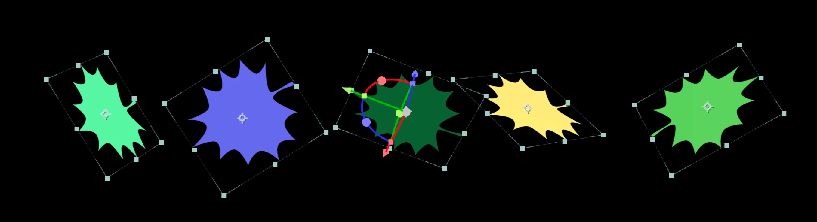- In the comp window, you can shift-click with the selection cursor on any object to deselect it, then shift click a second time to reselect it. After the second click, the gizmo will jump to the new object.