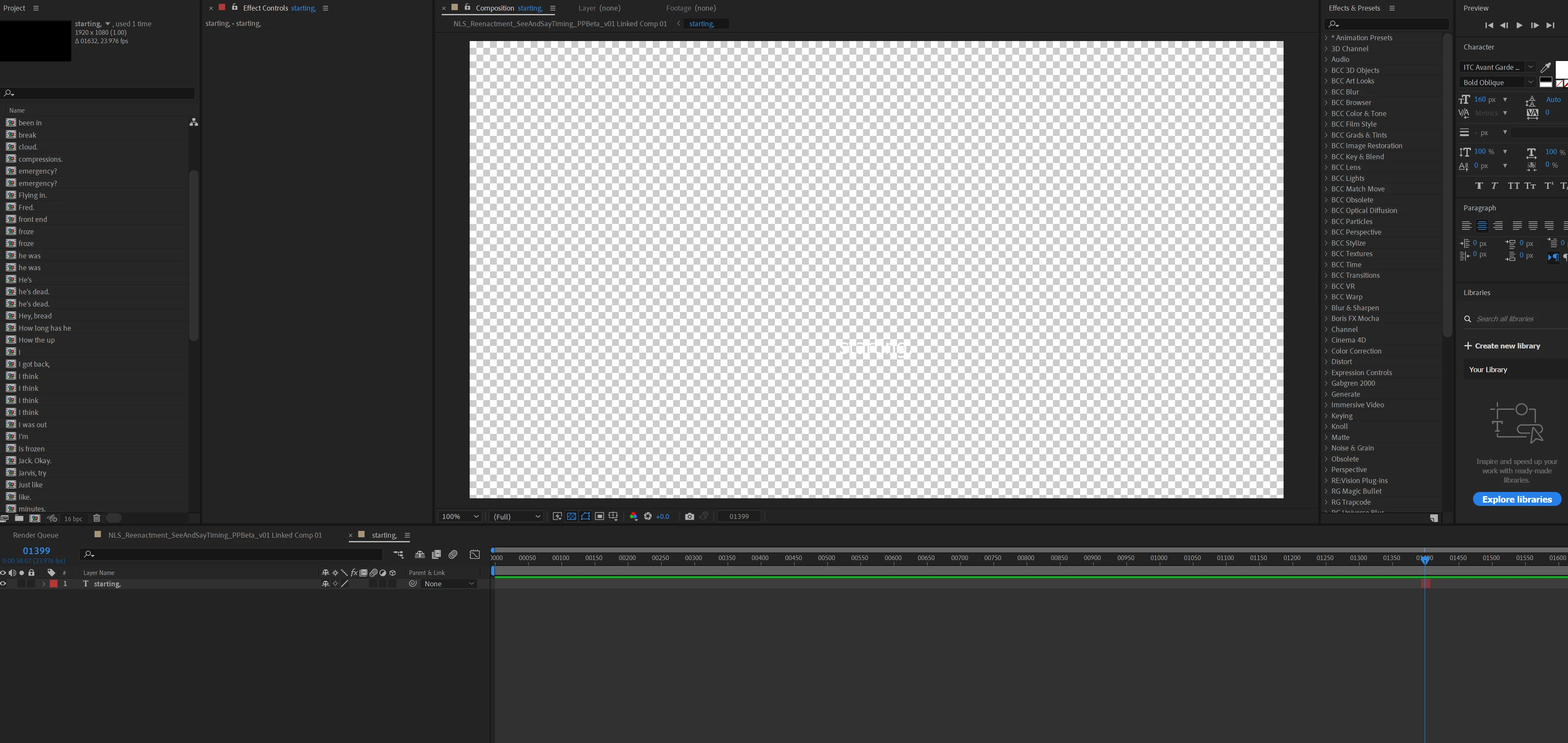2 issues. First I created the captions, and it misspelled a good portion of the dialogue. I kept trying to correct it but it keeps changing them back. Eventually I gave up trying to edit the captions and decided to just use them as a timing reference in after effects.