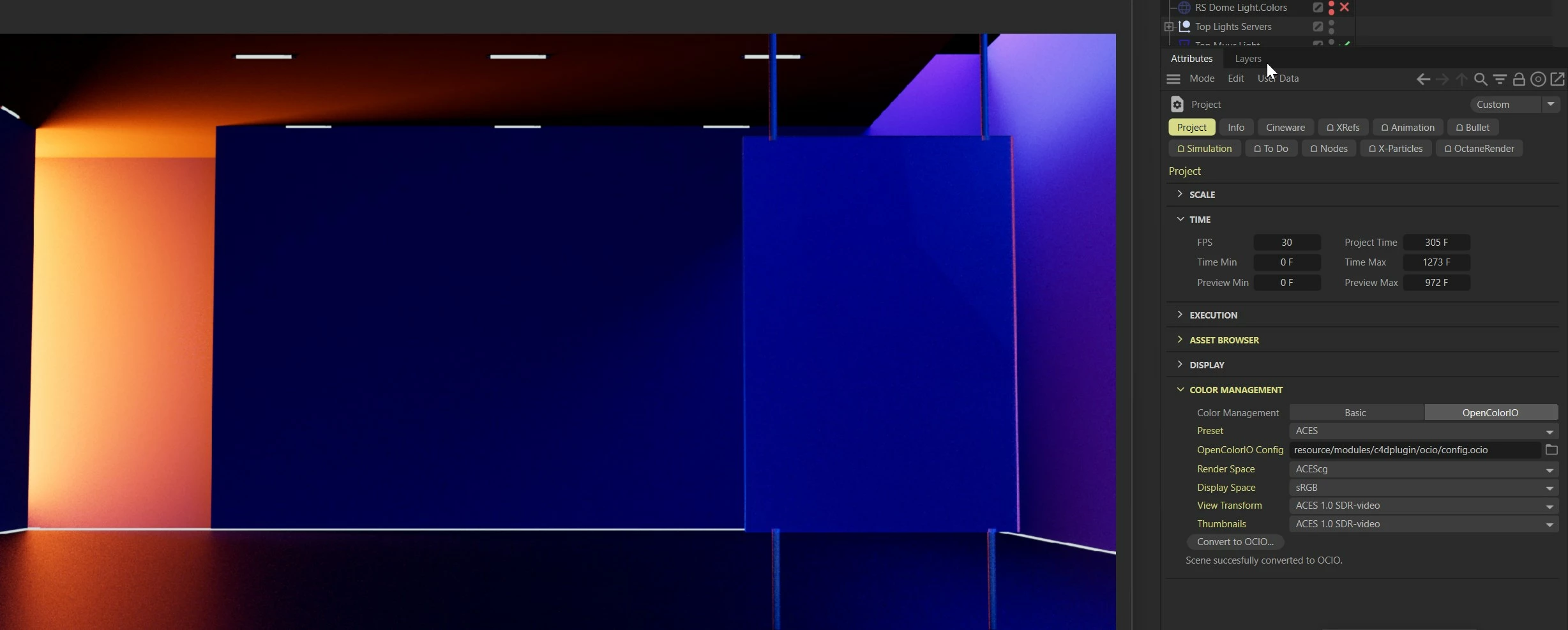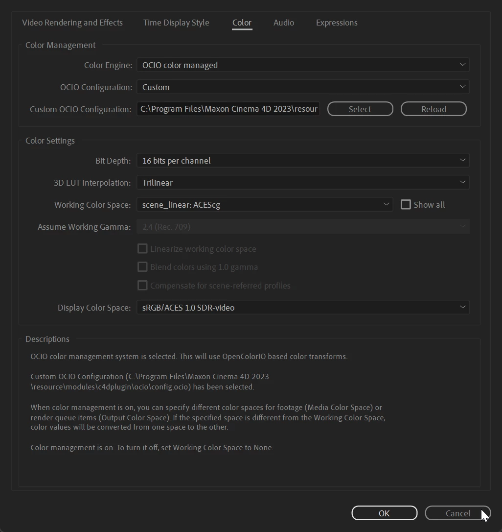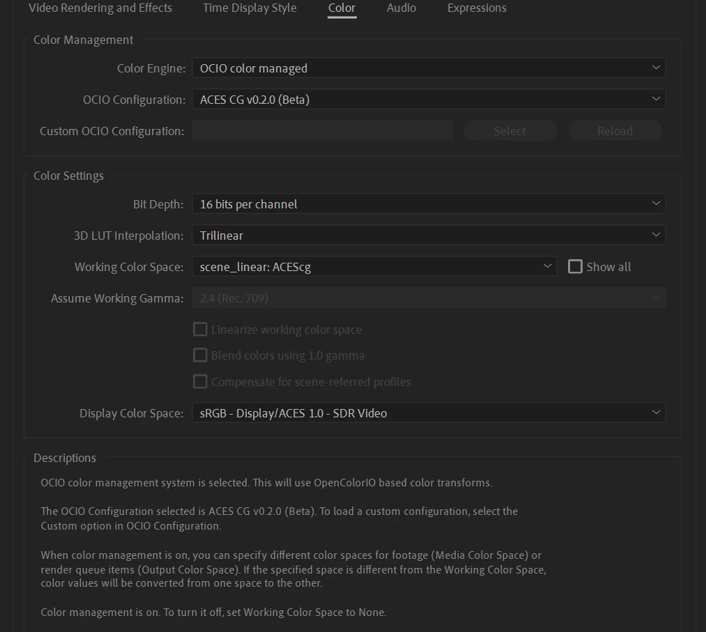 a. Create an After Effects project and select Color Engine as OCIO color managed.
