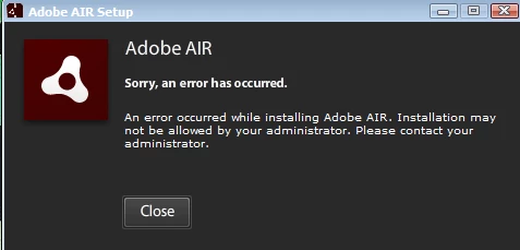 When I try to download the latest update for Adobe Air I get the message, "Sorry an error has occured. An error has occurred while installing Adobe Air. Installation may not be allowed by your administrator. Please contact your administrator." This is isn't the first time I posted this on this site. I already posted 2 of asking for help and this place is like a ghost town, but I'll try to make this the best and most helpful to help me please. I have a 64 bit Windows 7. I've gone through the common issues and troubleshooting and they didn't help.
