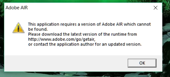 I am having trouble reinstalling the Adobe AIR application. I keep getting this message when I attempt to reinstall the latest update from the internet.