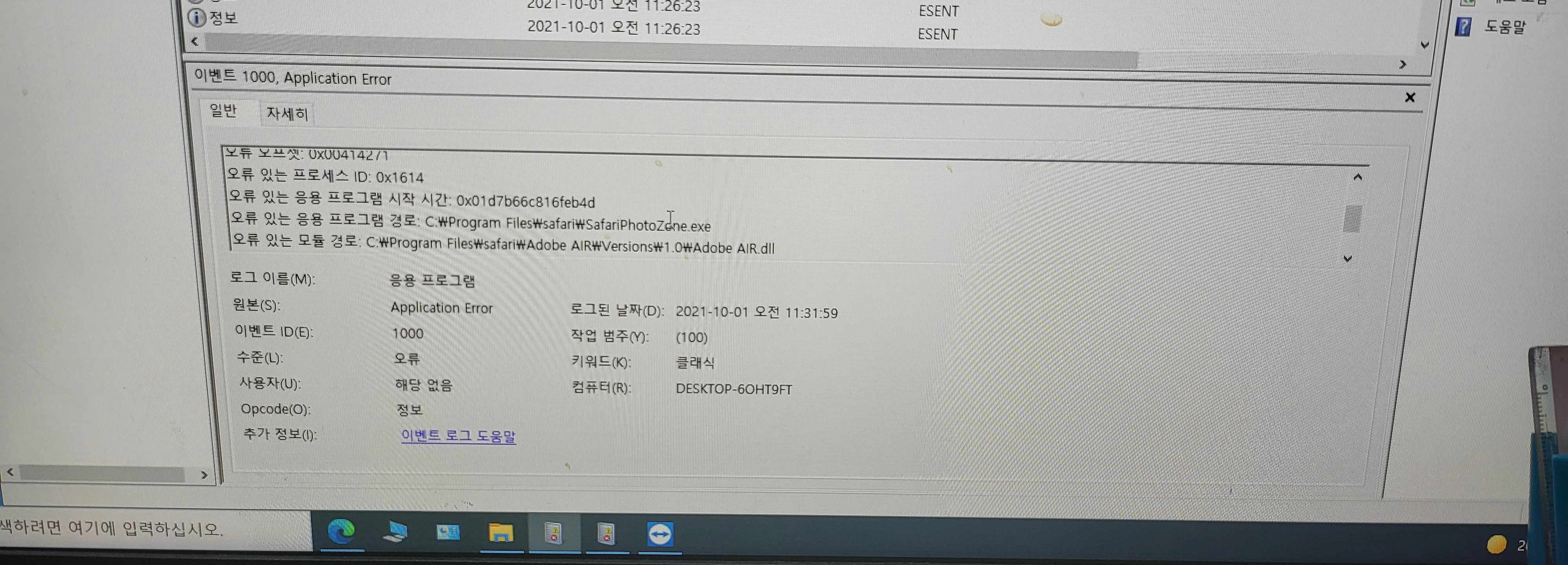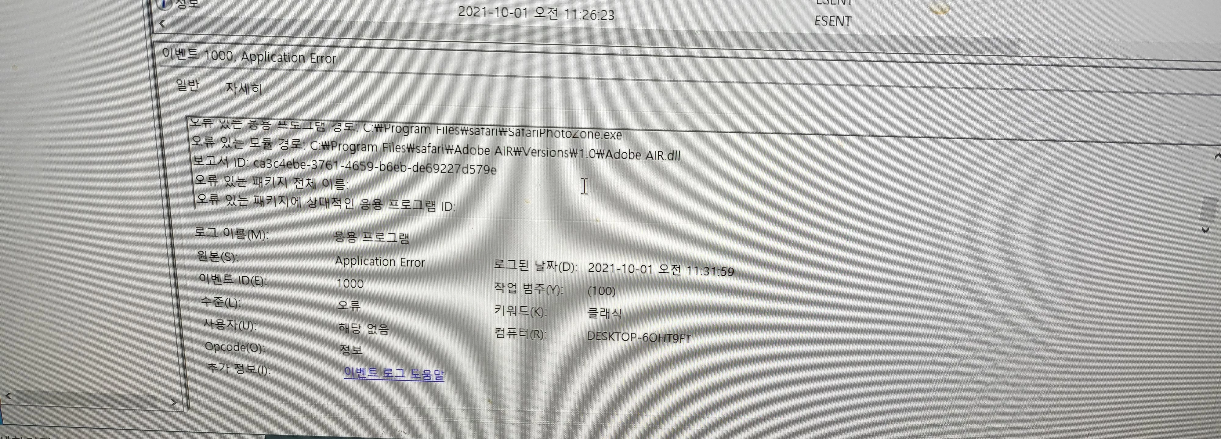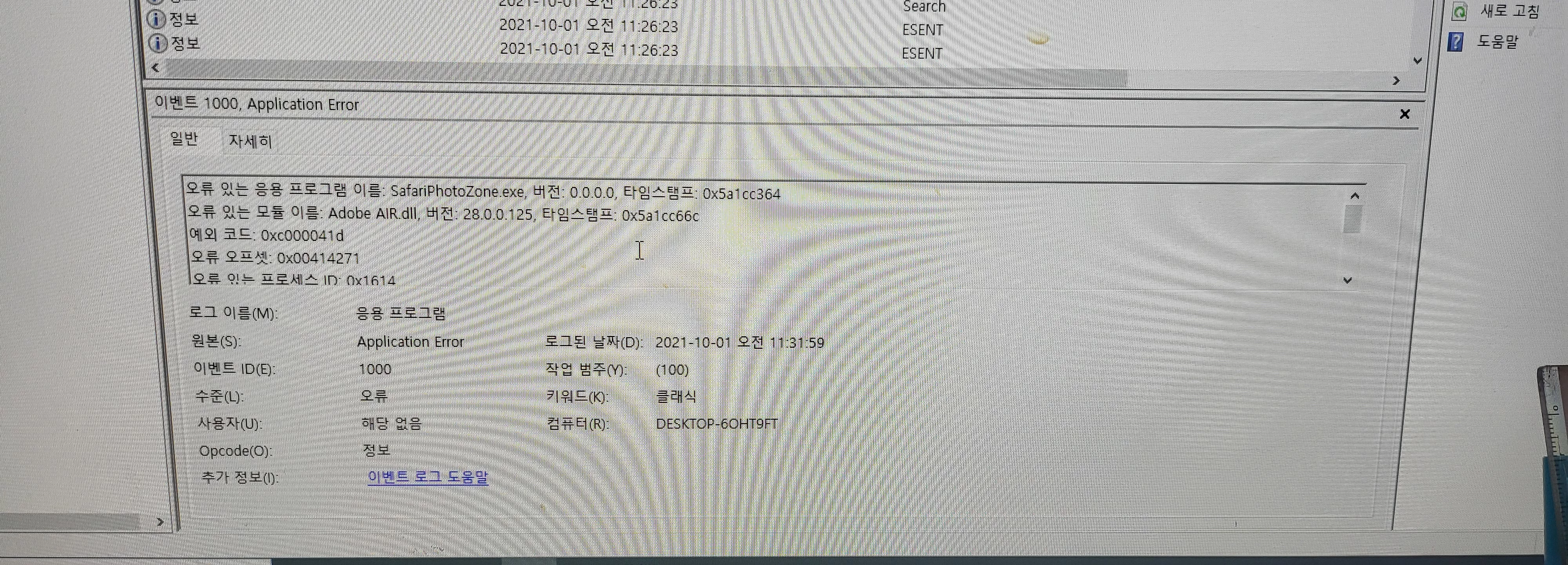 브브론티어5ED8ParticipantForum|Forum|4 years agoOctober 12, 2021Questionadobe air dll errorForum|Forum|4 years agoOctober 12, 20211 reply2187 views When executing the executable file, an application error event log occurs as shown in the picture above, and I ask if replacing the adobe air.dll file will solve it.If you know, please answer.