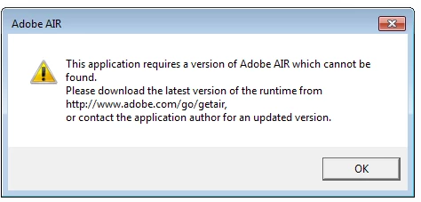 Adobe air keeps spitting an error of this app requires a version of adobe air which cannot be found.