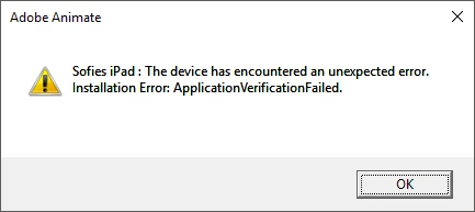 AIR Publish for iOS Error: Install application on the connected iOS device