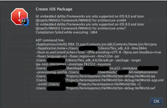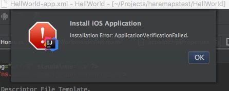 I've made a test AIR mobile app in Intelli J, I use Flex SDK 4.6, and when I try to build .ipa and run it on the device I get the following error: