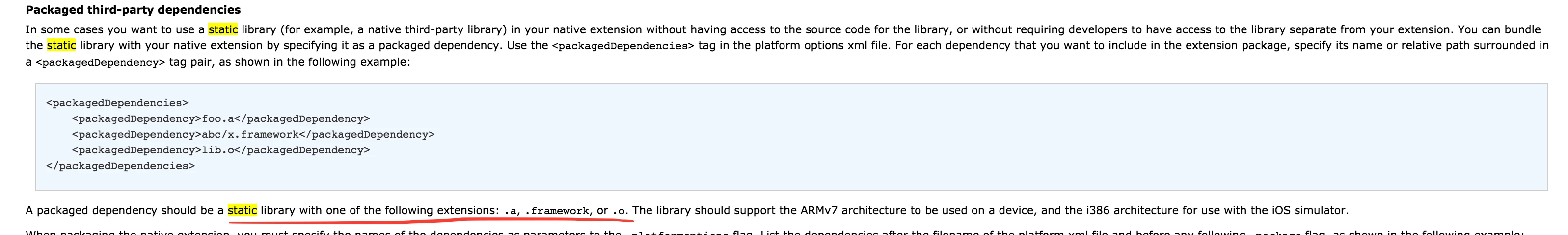 I'm building an ANE for NokiaHere maps for iOS. What they offer in their SDK is NMAKit.framework library which is a dynamic library. I wrote my own xCode project which implements all the stuff needed for ANE, I've built it as a static library (libHereMapsANEiOS.a). I integrated it with ANE project and I've successfully built the required .ane file. So far so good
