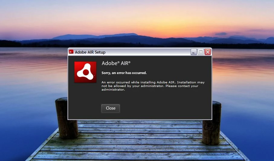 I am having huge problems with Adobe AIR. I couldn't update, so spent literally hours trying to uninstall v3.4 and finally got it uninstalled using IoBit. Now I can’t install v3.5. I keep being told “An error occurred while installing Adobe AIR. Installation may not be allowed by your administrator. Please contact your administrator.” I checked, and I am the only user and logged on as Administrator.