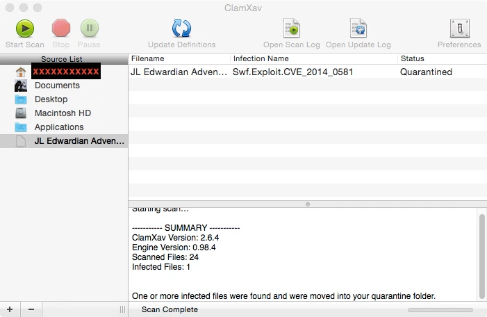 My ClamXav found the following attached to an app (JL Edwardian Advent Calendar) on my computer: Swf.Exploit.CVE_2014_0581. I have deleted and reinstalled the app, and I have updated the Flash Player and Adobe Air, but ClamXav continues to mark it as infected. Could this be a false positive? Is it safe to run this app after the updates?