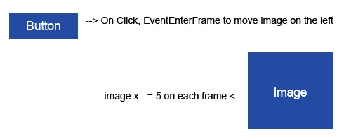 When i tap on the button, the image move to the left by 5px each frame with "EventEnterFrame" .