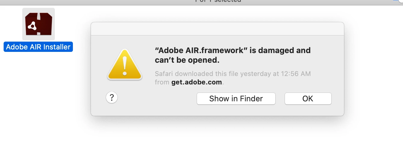 I am trying to install AdobeAir but it says my software does not support it. (However I have the Mac Catalina update.) I had to download an older version and I keep getting the "damaged file" message and it won't install. I messaged Adobe and they were not super helpful since their solution was literally "teach yourself how to code and figure out the problem on your own!"