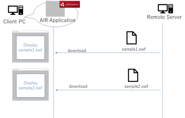 Sample program could download and display sample1.swf file which built by flex3 SDK.