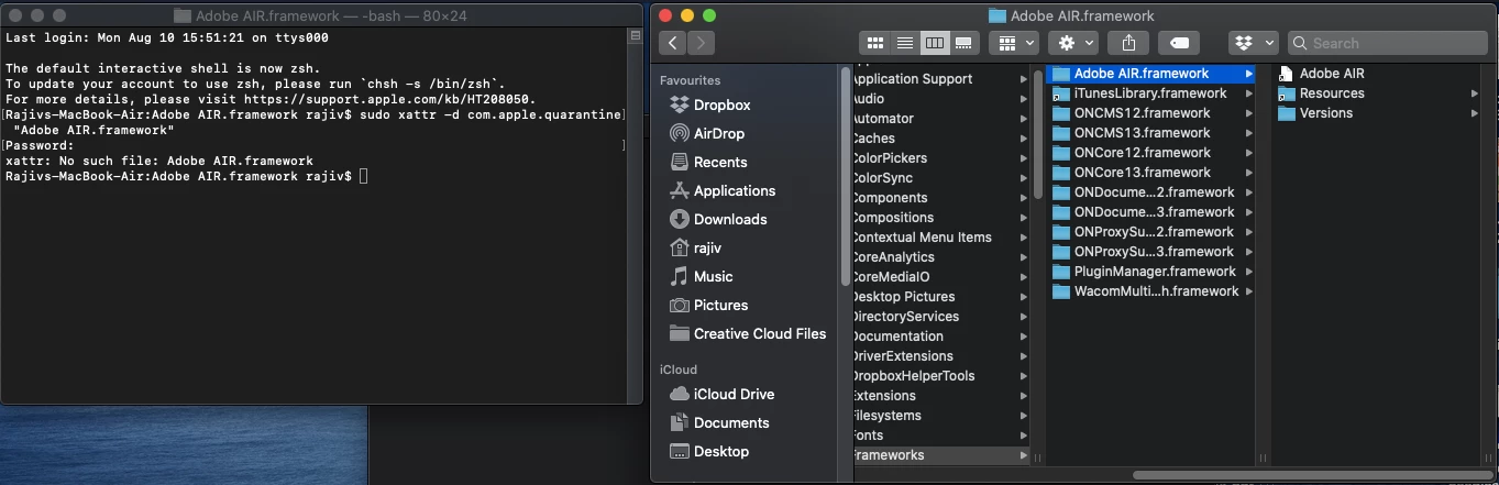 I downloaded AIR from the Adobe site, and I get some Frame/Framework error. It says that the Frame is damaged.