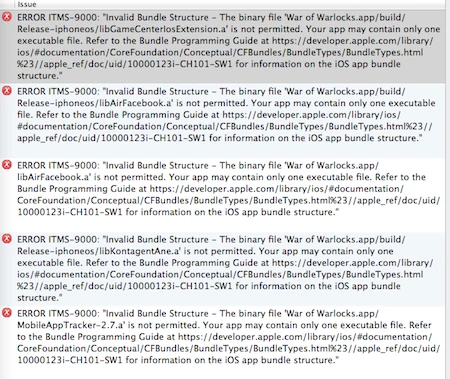 Thank you for reporting the problem. Are you using any ANEs in the IPA? If yes, there is a possibility of ANE carrying an executable or static .a file. If you received the ANE from a third party, would it be possible for you to check with them?